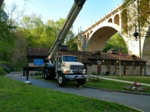 Gallery Crane set and ready to lift Tree Removal Setting stairs Lifting Burger King sign Setting roof of house Tree removal Setting up sign Placing Sign Placing in house Work with a view DC Truck from our fleet Hauling to job Loading for job Setting Arch way Placing tower Truck from fleet Placing Balcony Crane from fleet Another trip to DC Setting Ford sign Flying American Flag Crane in action Setting Chimney